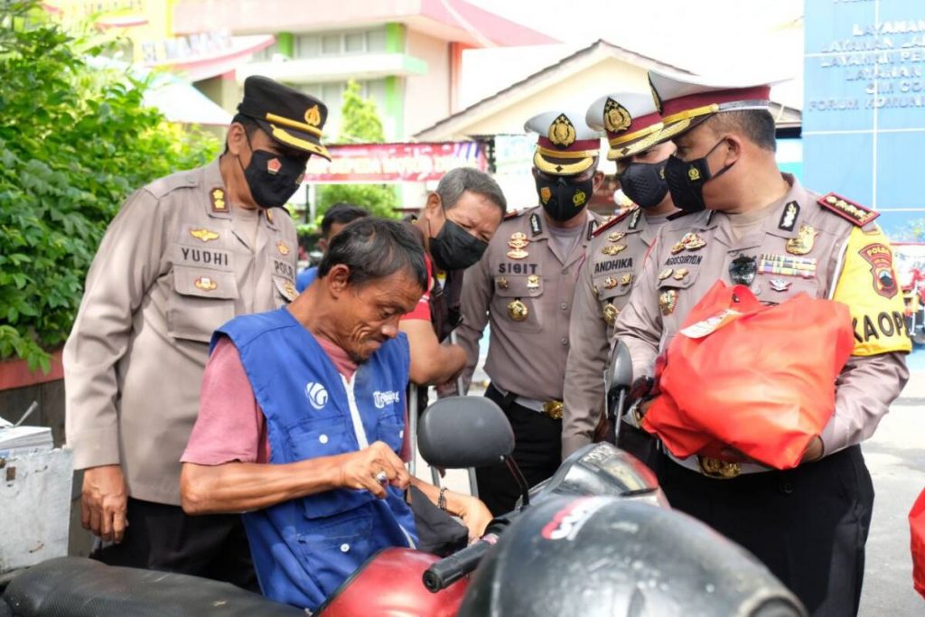 Usai apel, Dirlantas didampingi Wadirlantas Polda Jateng dan Kasatlantas Polrestabes Semarang melaksanakan kegiatan pembagian bansos di depan Pos Lantas Simpang Lima kepada pengguna jalan sebagai wujud kepedulian Polri kepada masyarakat di tengah pandemi Covid-19.