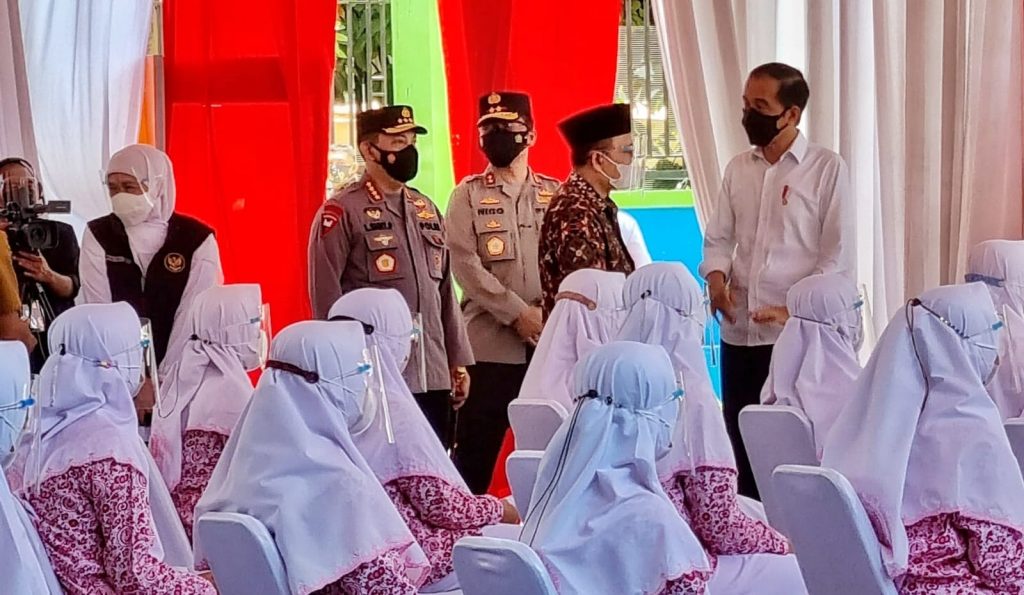 “Terimakasih atas kerja keras kita semua, semoga dengan kecepatan vaksin yang telah kita lakukan, penyebaran covid-19 dapat kita kurangi, bisa kita hentikan,” ucap Jokowi saat berkunjung di Ponpes KH. Syamsuddin, Kabupaten Ponorogo.